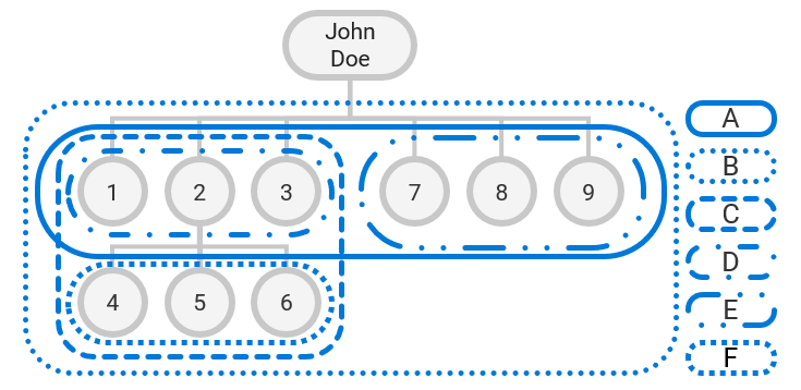 - Eine Ebene für das Team von Benutzer 2 (Benutzer 4 – 6).